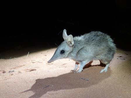 Western Barred Bandicoots (Perameles bougainville) once lived over much of southern arid Australia, from Western Australia to New South Wales and Victoria. By the 1930’s, they were extinct on the mainland, largely due to predation by feral cats and foxes. They only survived on two islands (Bernier and Dorre), off the Western Australian coast and are currently listed as Vulnerable to extinction. They have been reintroduced to three predator-free sites: here at Arid Recovery, and Faure Island and Mt Gibson Wildlife Sanctuaries in Western Australia, and there are plans for reintroduction of Western Barred Bandicoots to sites in NSW in the near future.