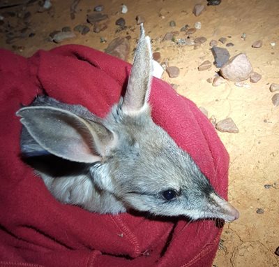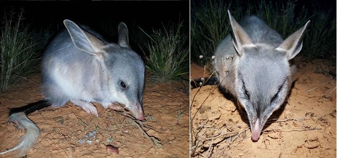 The greater bilby (Macrotis lagotis) is recognisable thanks to the distinctive long ears and pointy nose. Their range has declined by up to 70% since European arrival.