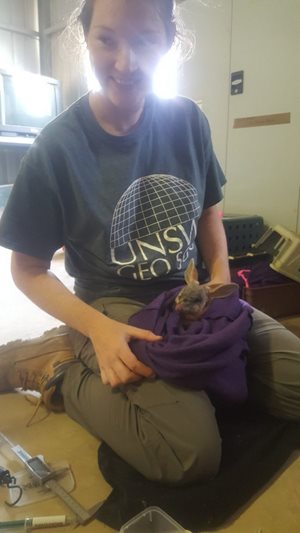 The first thing we wanted to know was whether bilby behaviour differed between the cat-exposed population and the cat-free population. Had the bilbies in Red Lake learned to behave differently in order to avoid cats? To compare behaviour we caught 16 bilbies from Main Exclosure (the cat-free population) and 10 bilbies from Red Lake (the cat-exposed population) and put each bilby into a pen where we filmed their behaviour for 15 minutes. The cat-exposed bilbies spent less time moving, and more time hiding under the available cover than the cat-free bilbies. So in just two years they’ve learned to go still and hide instead of running around in the open where cats can easily spot them!