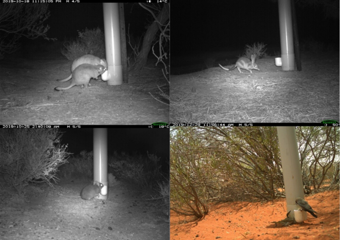All sorts of animals come in to the water fountains that we’ve set up at Arid Recovery – Burrowing Bettongs, Bilbies, Goannas, Small Mammals, Birdlife and even our struggling Stick-nest Rats . You can read more about the impact of the drought in the arid zone here and how we are responding in these blogs: Stick Nest Rats Struggling to Stick It Out or Desperately Dry.