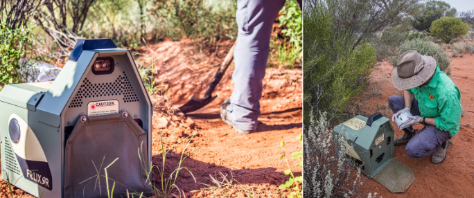 The Arid Recovery reserve boundary is lined with a network of cage traps to target cats that patrol the reserve fences. And while these traps are numerous and largely effective, you will still naturally get cats that will either miss the traps or, more importantly, will be too trap-shy to enter one. This is where a tool like the Felixer really comes in handy.