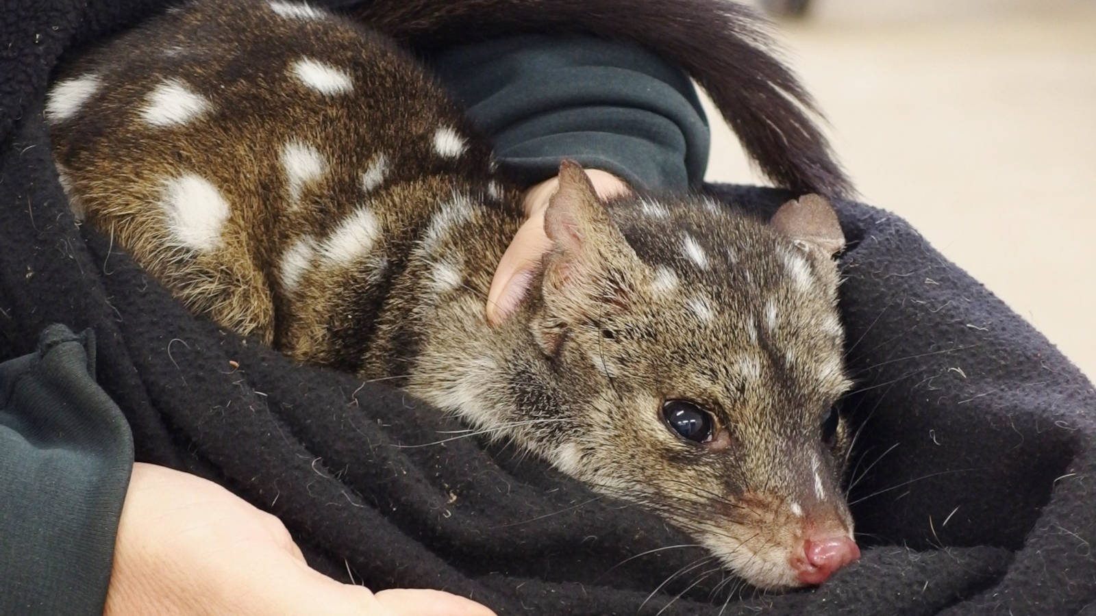 Breeding: Western quolls can give birth to up to six young. The young are kept in the mother’s pouch until between two to three months of age. The mother then leaves the young in the den while she goes out to feed. The young are weaned at about five to six months and are fully mature at one year.